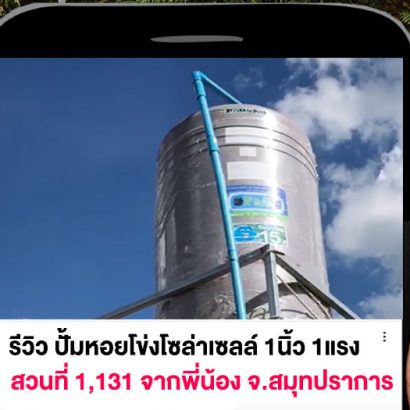 รีวิวใช้งานจริง สวนที่ 1,131 | ปั้มแรงดันโซล่าเซลล์ 1นิ้ว 1แรงม้า ส่งขึ้นแทงค์สูง 6 ม. คลิปจากจังหวัดสมุทปราการ