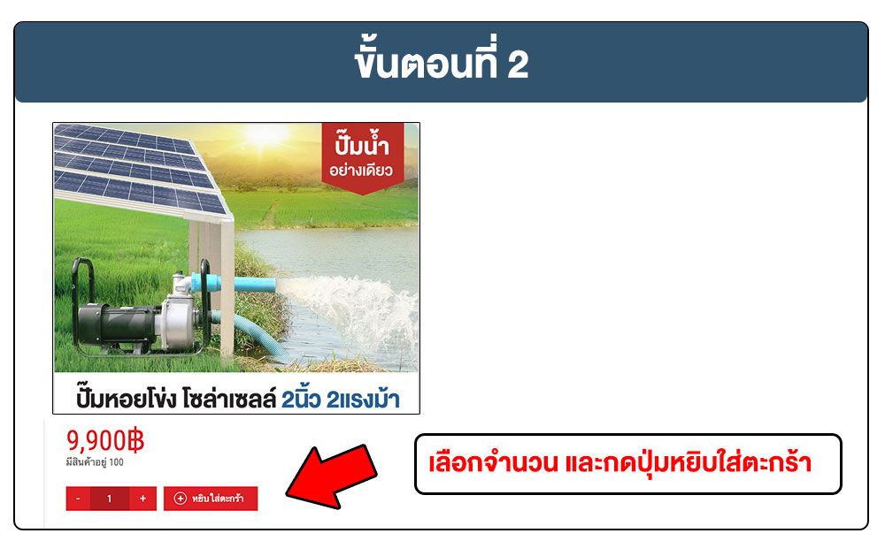 ขั้นตอนที่ 2 เลือกจำนวนสินค้า แล้วกดปุ่มหยิบใส่ตะกร้า