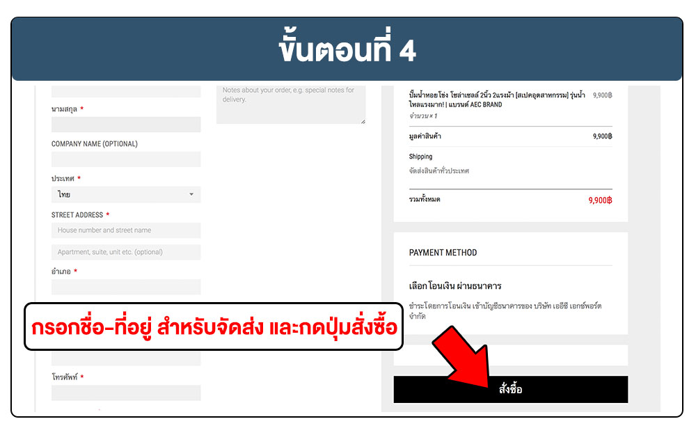 ขั้นตอนที่ 4 กรอกที่อยู่สำหรับจัดส่งสินค้า แล้วดำเนินการกดปุ่มสั่งซื้อ