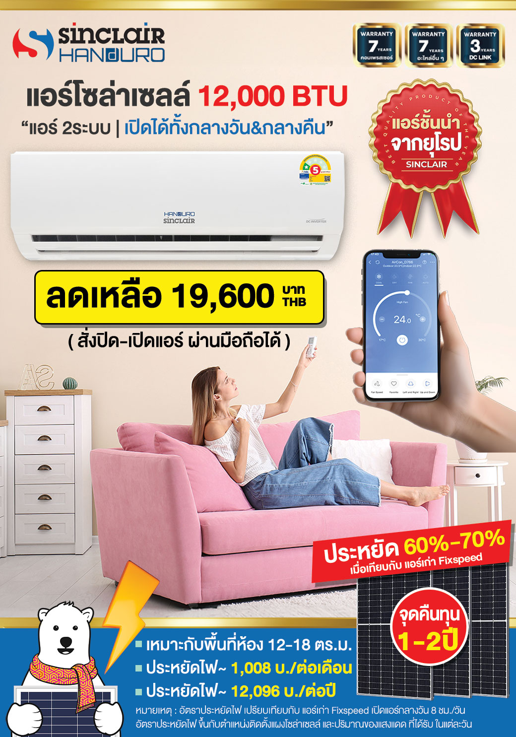 • ?ราคาแอร์โซล่าอย่างเดียว : 19,600 บ.