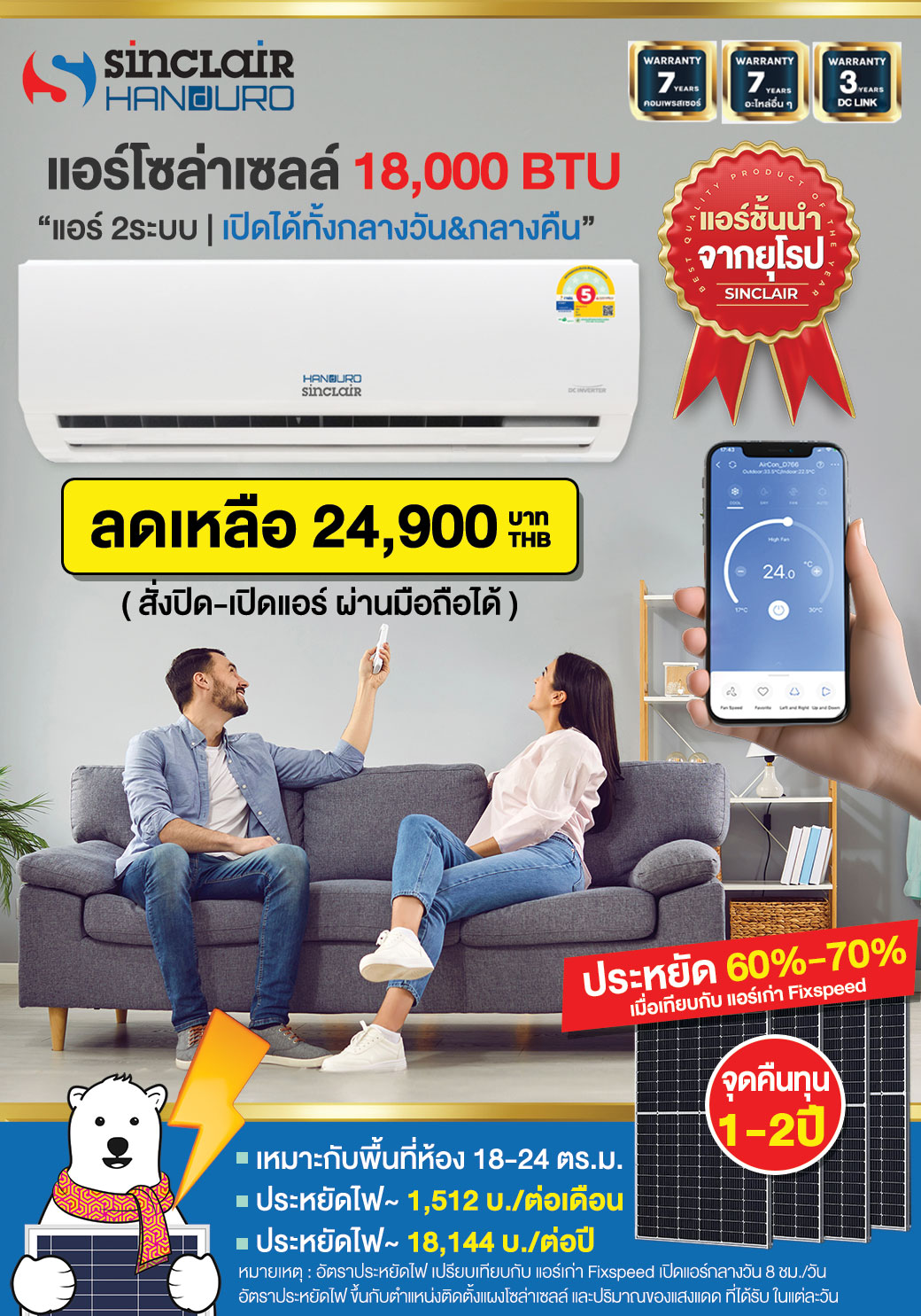• ?ราคาแอร์โซล่าอย่างเดียว : 24,900 บ.