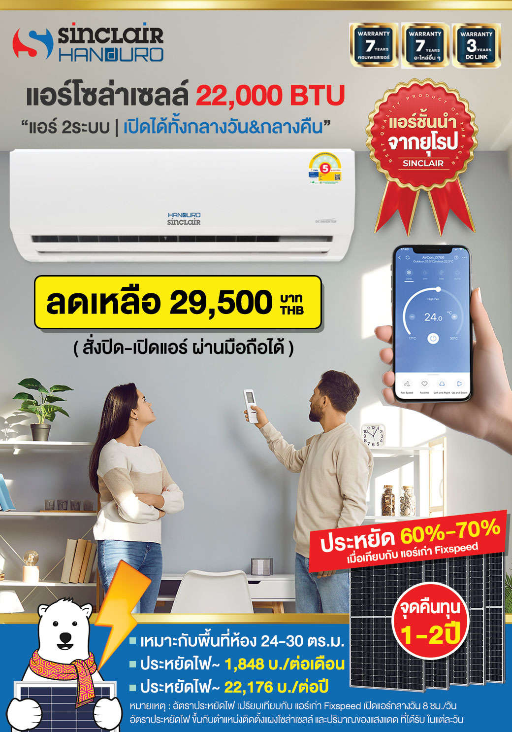 • ?ราคาแอร์โซล่าอย่างเดียว : 29,500 บ.