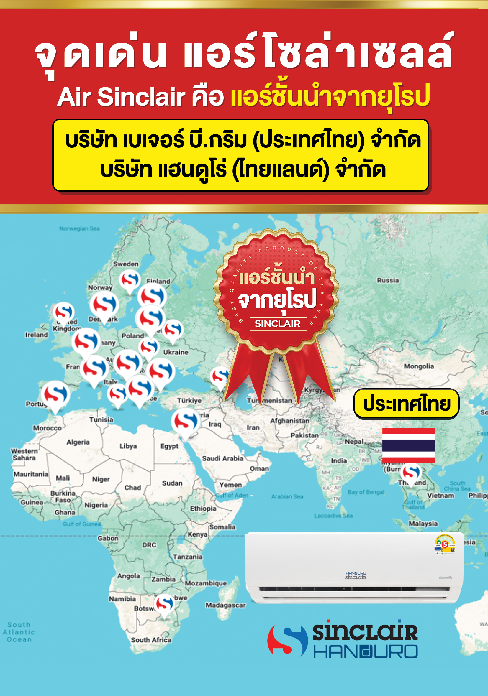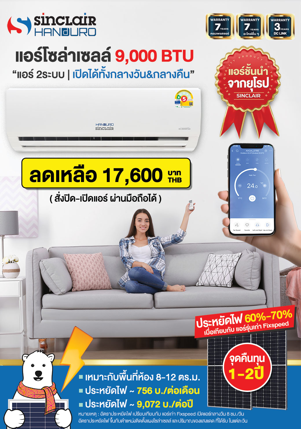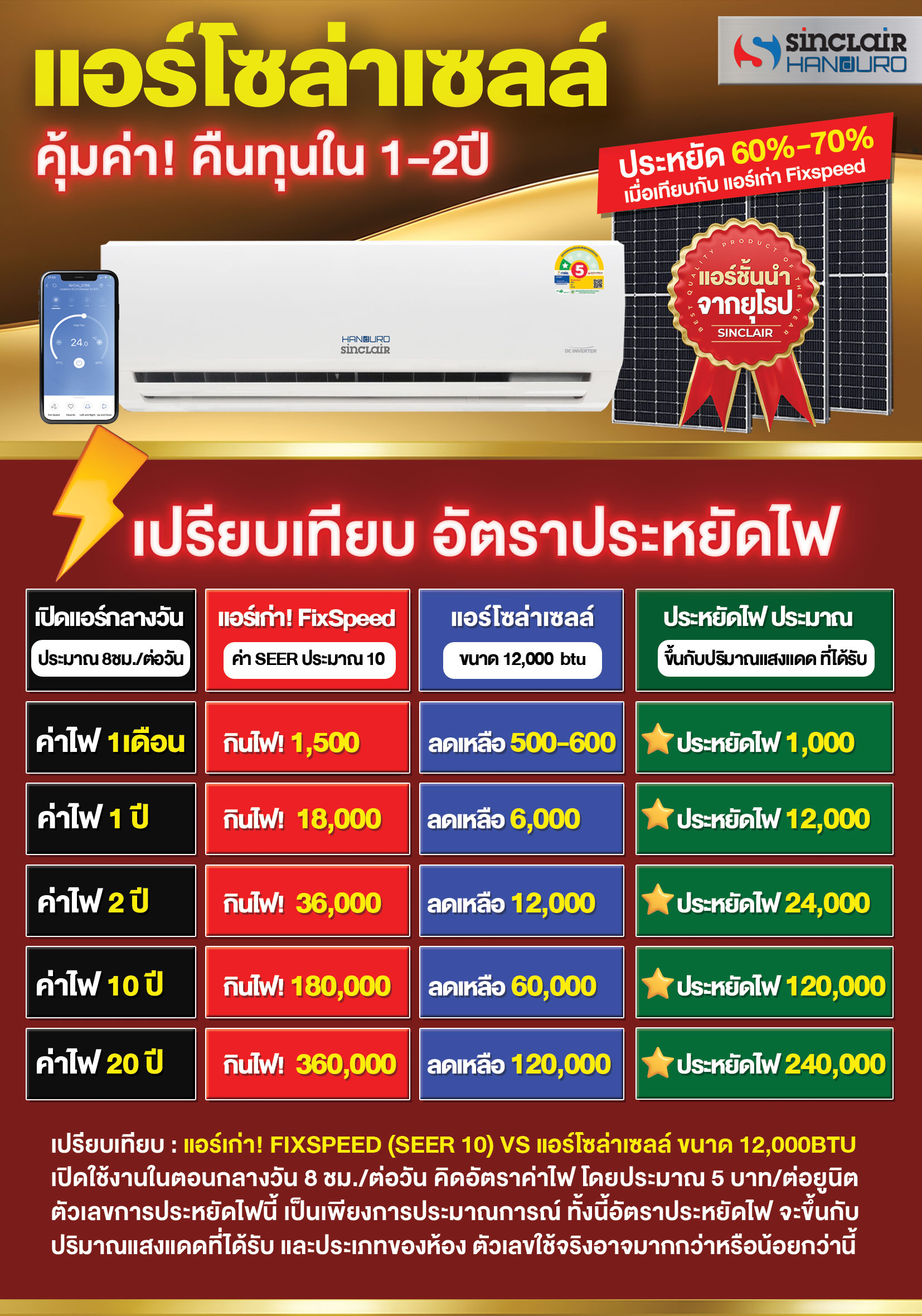 รวมสเปค&ราคา แอร์โซล่าเซลล์ ทุกรุ่น Handuro-Sinclair