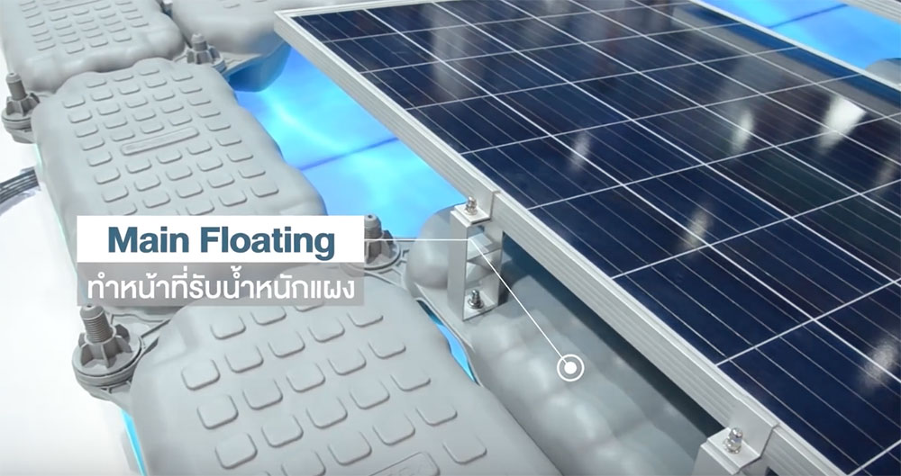 โซล่าเซลล์ลอยน้ำ ก็คือ แผ่นโครงสร้างที่ทำจากวัสดุพิเศษ ที่มีน้ำหนักเบา และมีความสมบัติในการ ทนแดด ทนการกัดกร่อน จากน้ำเค็มในทะเล และสามารถรองรับน้ำหนัก และแรงกดของแผงโซล่าเซลล์ ได้เป็นอย่างดี