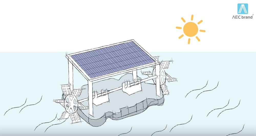 2.กังหัน ตีน้ำ เพิ่มฟองอากาศ ให้กับ ฟาร์มกุ้ง