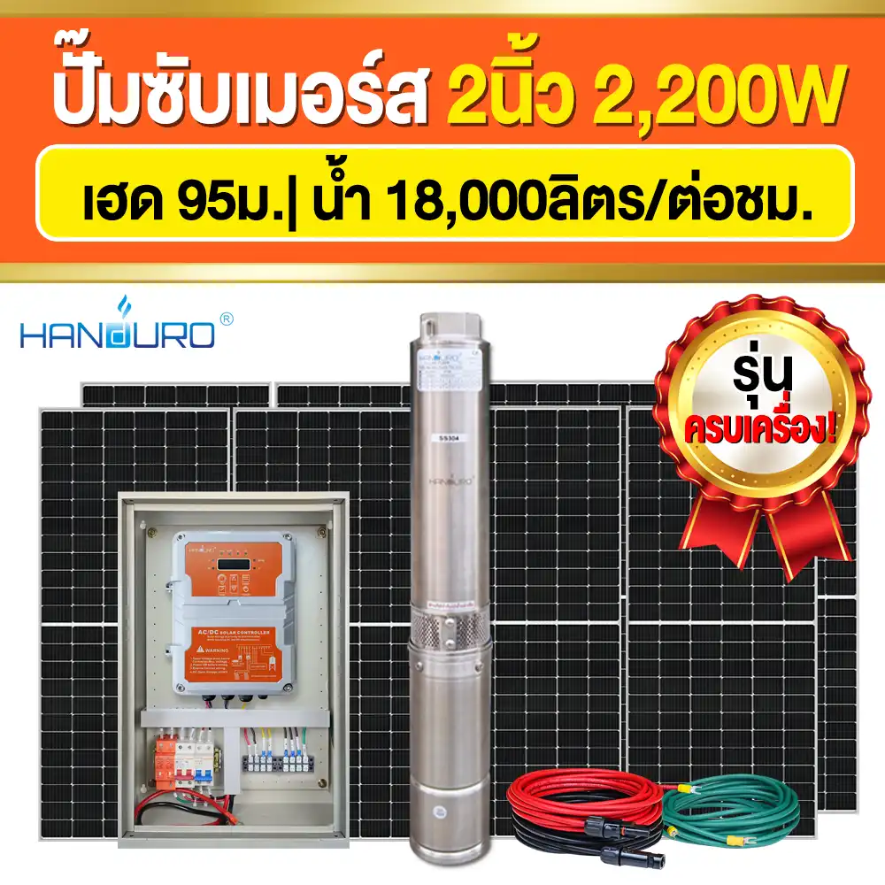 ปั๊มบาดาลโซล่าเซลล์ 2นิ้ว AC/DC 2200W 3แรงม้า | เฮดปั๊ม 95ม.| น้ำ 18,000ลิตร/ชม. | Handuro | ✅>>[คลิกดูที่นี่]