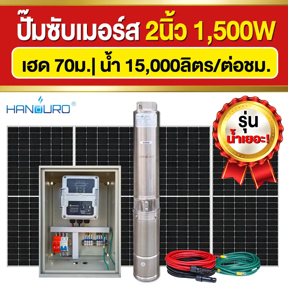 ปั๊มบาดาลโซล่าเซลล์ 2 นิ้ว 1,500W 2แรงม้า | เฮดปั๊ม 70ม.| น้ำ 15,000ลิตร/ชม. | Handuro | ✅>>[คลิกดูที่นี่]