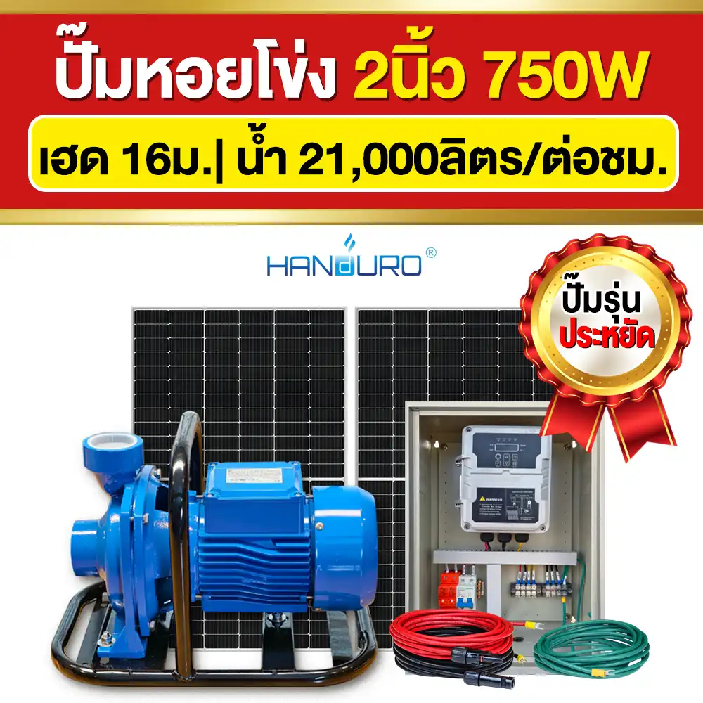 ปั๊มหอยโข่งโซล่าเซลล์ รุ่น 2นิ้ว 750W 1แรงม้า | เฮดปั๊ม 16ม.| น้ำ 21,000ลิตร/ชม.| Handuro | ✅>>[คลิกดูที่นี่]