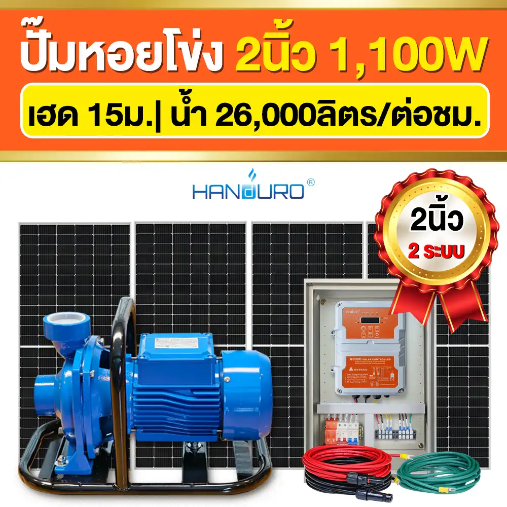 ปั๊มหอยโข่งโซล่าเซลล์ รุ่น 2นิ้ว AC/DC 1100W 1.5แรงม้า | เฮดปั๊ม 15ม.| น้ำ 26,000ลิตร/ชม.| Handuro | ✅>>[คลิกดูที่นี่]