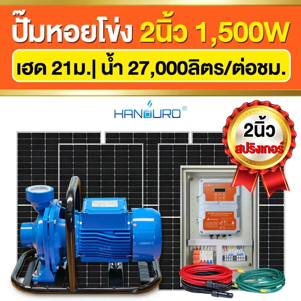 ปั๊มหอยโข่งโซล่าเซลล์ รุ่น 2นิ้ว AC/DC 1500W 2แรงม้า | เฮดปั๊ม 21ม.| น้ำ 27,000ลิตร/ชม.| Handuro | ✅>>[คลิกดูที่นี่]